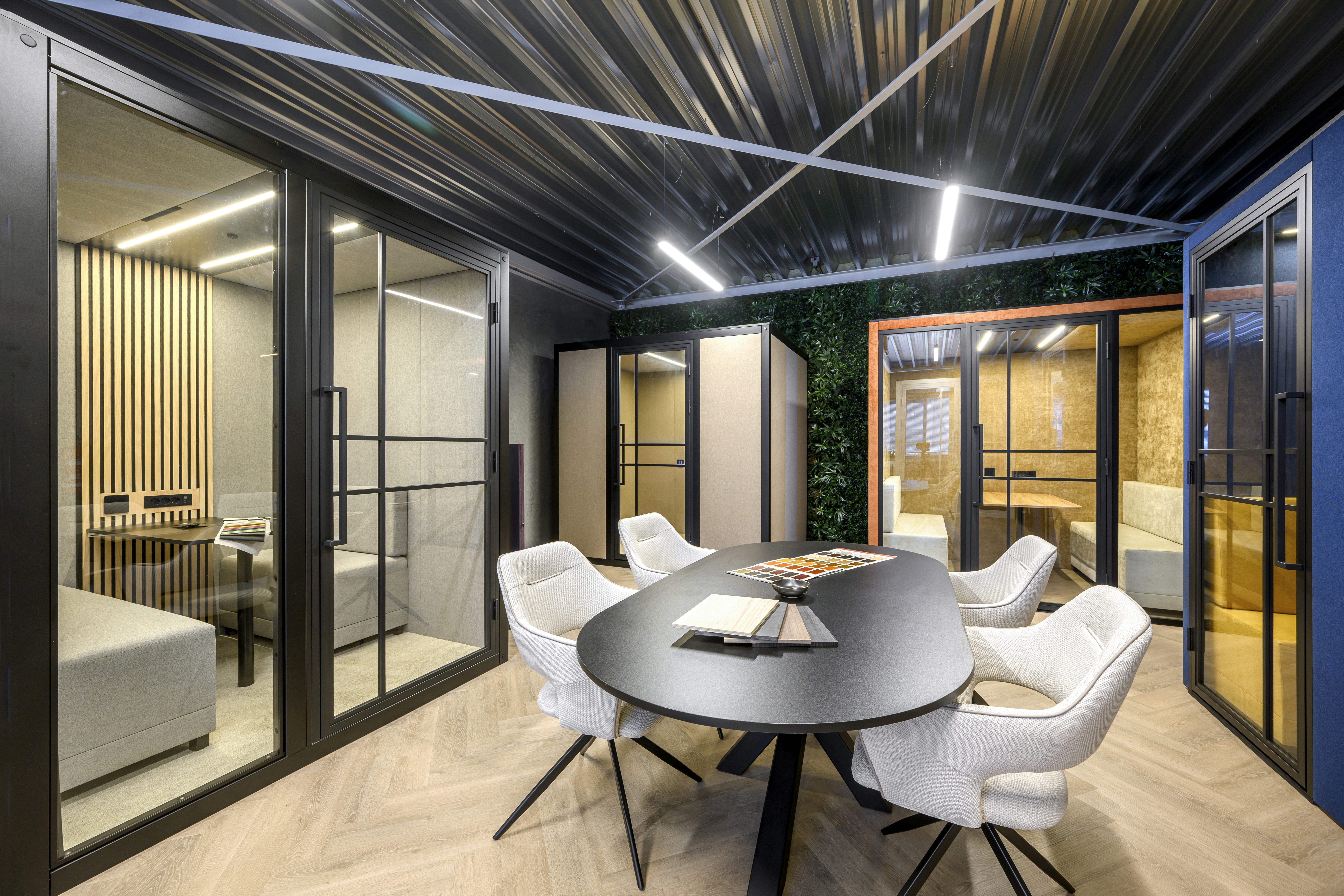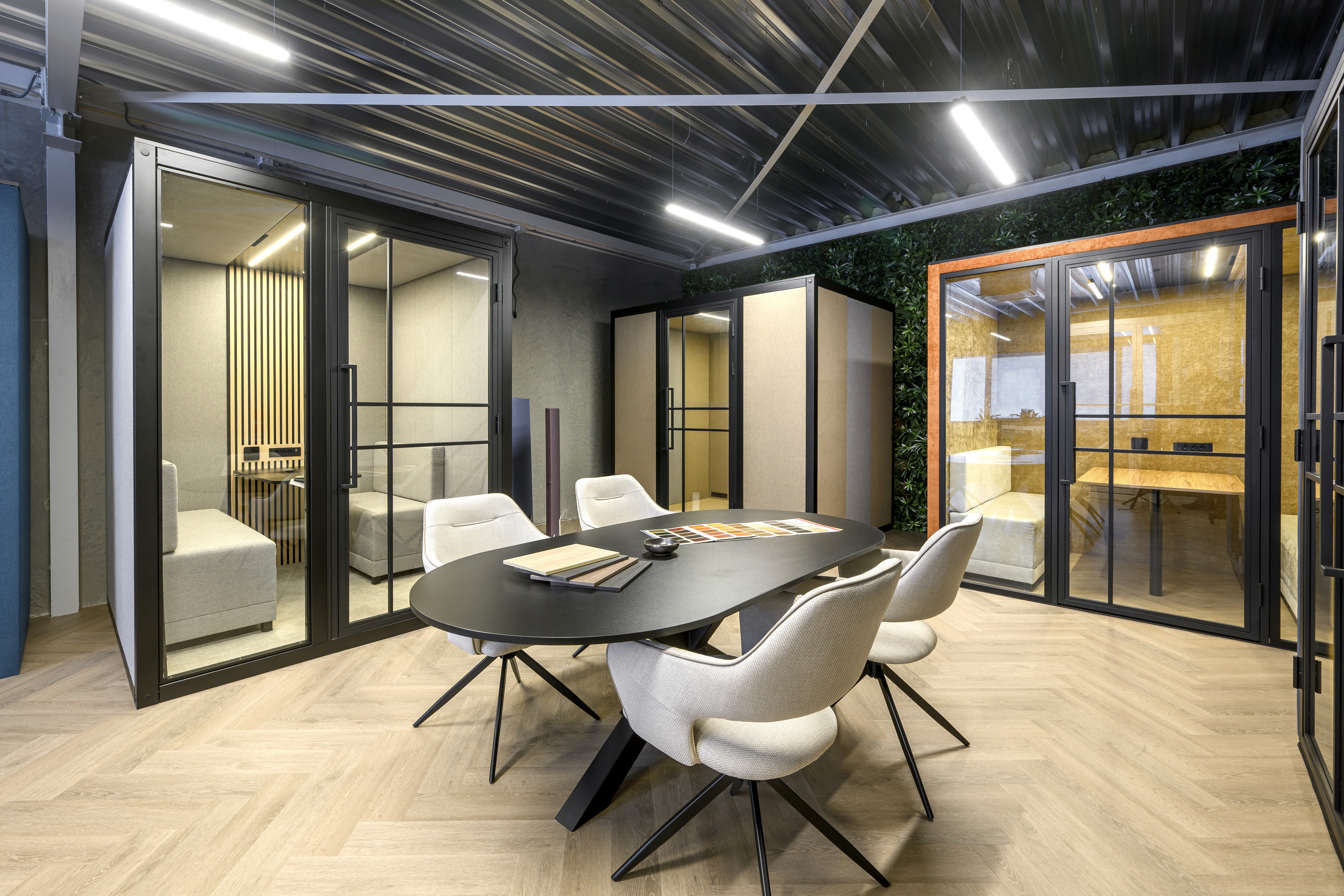 High-performance acoustic insulation that effectively blocks office chatter.